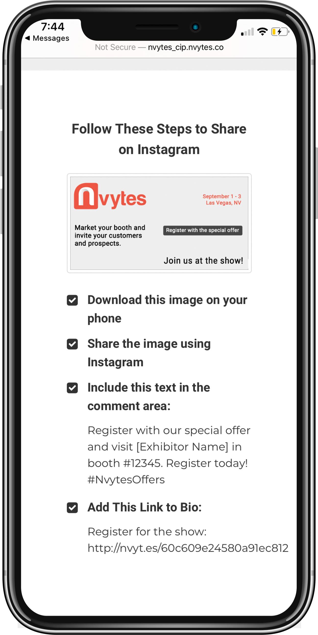 Also provided is an Instagram invitation post with a show-branded image. We include the registration link and caption in the directions for easy copying and pasting into your Instagram bio.