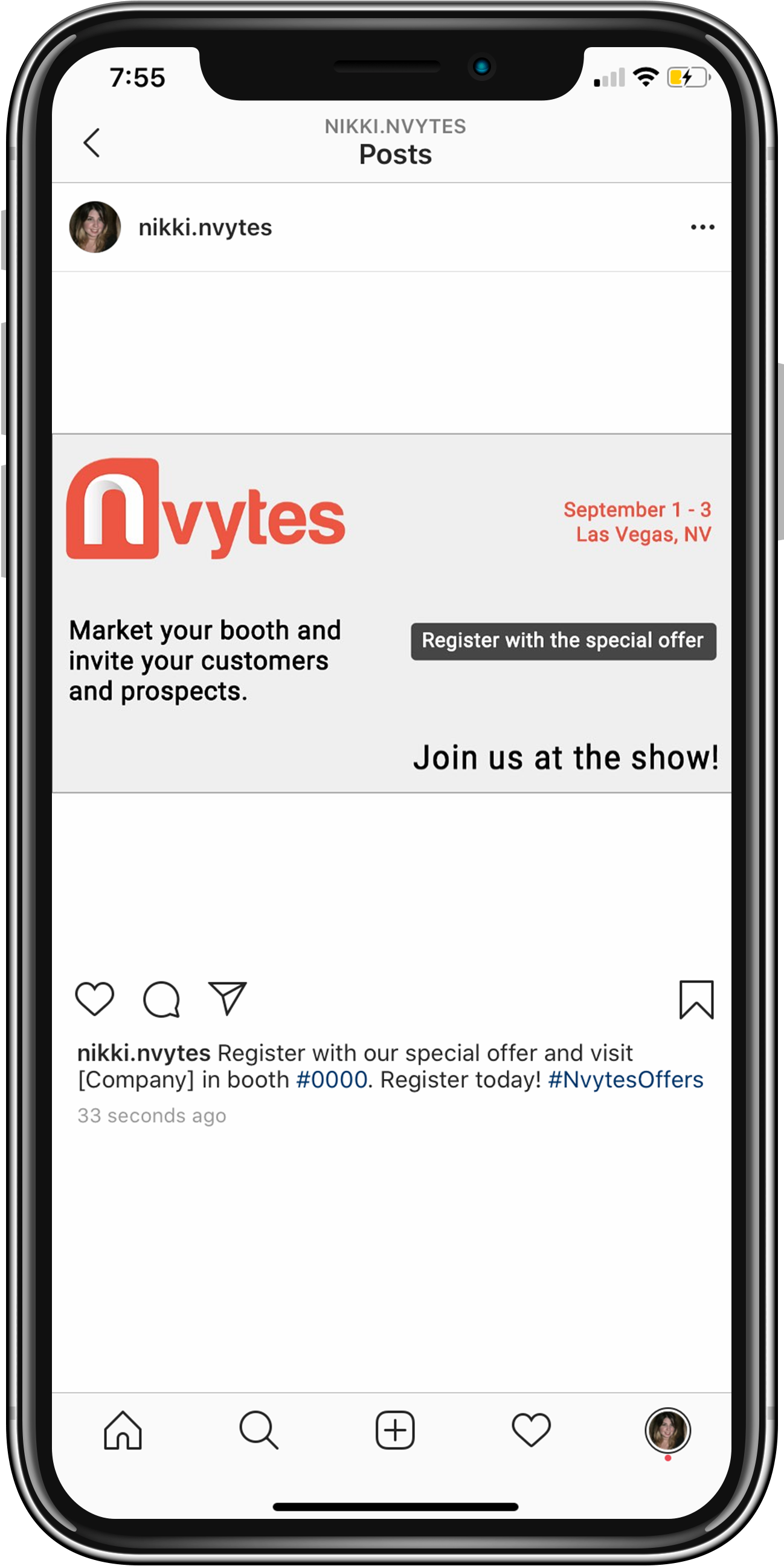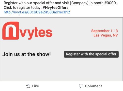 Select the image from your library and paste the caption provided, or create your own! If you create your own caption, be sure to provide your booth number so your guests can meet you at the show.