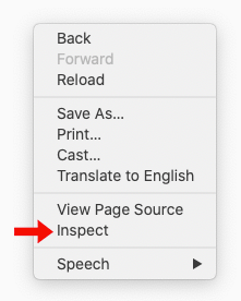 Right-click anywhere in the white space on page and select “Inspect”