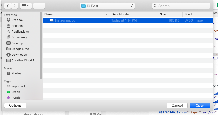 Locate the image you would like to upload and click “Open”